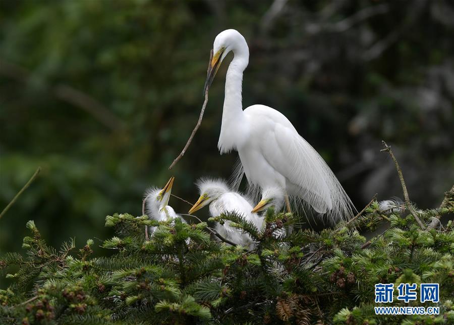 在江西省南昌市新建區(qū)象山森林公園內(nèi),白鷺和自己的雛鳥在一起(5月21日攝)。 近日,在江西省南昌市新建區(qū)象山森林公園內(nèi),已安家筑巢的大批鷺鳥陸續(xù)孵化出了后代。象山森林公園有著“鷺鳥王國”的美譽(yù),生態(tài)環(huán)境良好,每年都會(huì)吸引白鷺、蒼鷺、夜鷺等鷺鳥飛抵棲息和繁衍后代。 新華社記者 彭昭之 攝