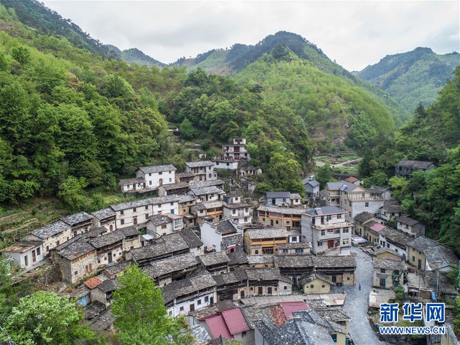 掩映在大山之中的石板房古村落,人去房空(8月7日無人機(jī)拍攝)。 新華社記者陶明攝
