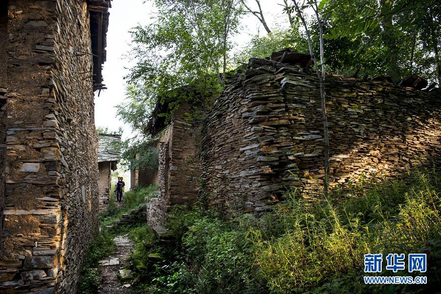 63歲的劉長鎖老人生于斯長于斯,整個(gè)村落僅他一人(8月7日攝)。他的孩子2014年搬進(jìn)山下的新居。 新華社記者陶明攝