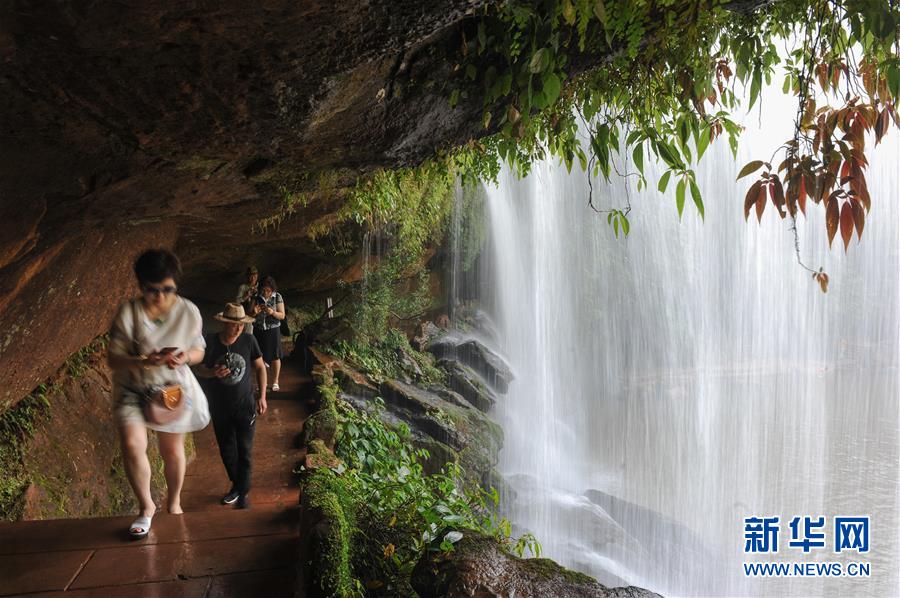 6月4日,游人在貴州赤水四洞溝景區(qū)游覽。 貴州遵義赤水市有眾多大大小小的瀑布群,素有“千瀑之市”的美譽(yù),飛瀑美景吸引八方游客前來賞景度假。 新華社記者鄭雅寧攝