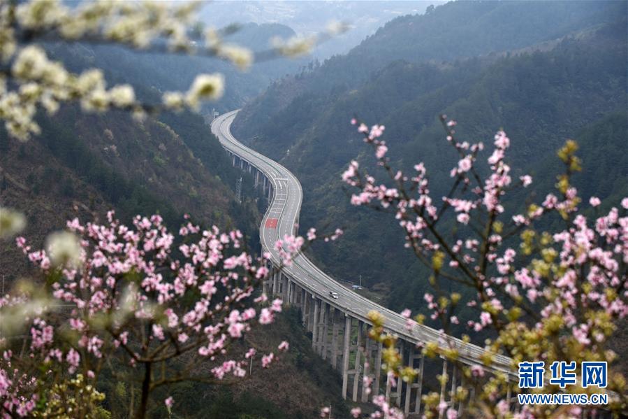 貴州思劍高速公路劍河縣岑松鎮(zhèn)段的春季景觀(3月23日攝)。陽(yáng)春時(shí)節(jié),貴州思(南)劍(河)高速公路劍河縣岑松鎮(zhèn)附近的桃花和梨花陸續(xù)開放。 新華社記者楊文斌攝