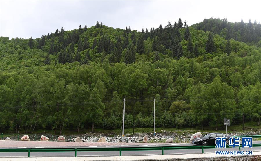 6月11日,一輛汽車(chē)在青海省扎隆溝至碾伯鎮(zhèn)公路上行駛。新華社記者 張宏祥 攝