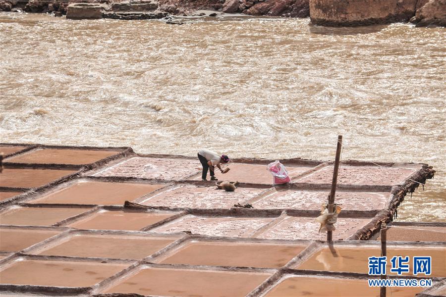 西藏芒康縣納西民族鄉(xiāng)加達(dá)村村民在鹽田曬鹽(6月4日攝)。新華社記者晉美多吉攝