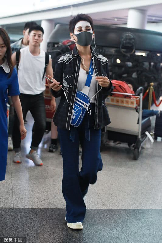 2019年6月19日,北京,寧靜現(xiàn)身機(jī)場(chǎng)。她穿敷面膜亮相短發(fā)干練個(gè)性灑脫,戴口罩對(duì)鏡揮手大方任拍。