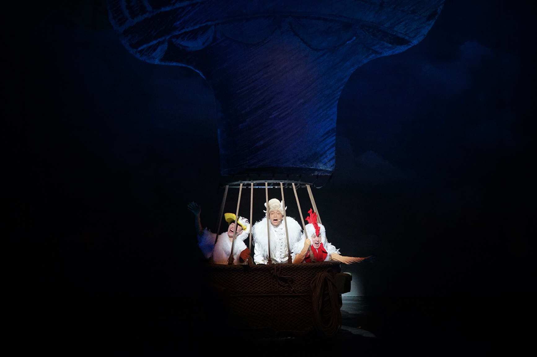 《毛毛帶你飛》整個(gè)舞臺(tái)就是一個(gè)巨大的“飛行實(shí)驗(yàn)室”,舞臺(tái)上的每個(gè)角落都隱藏著不同時(shí)代的飛行器:巨大的紙鳶,大小不一的孔明燈,萬戶飛天的火箭椅,最古老的熱氣球……伴隨著故事的不斷發(fā)展,小朋友可以清晰地認(rèn)識(shí)到飛行器是如何一點(diǎn)點(diǎn)進(jìn)化和完善的。在美國萊特兄弟發(fā)明雙翼飛機(jī)“飛行者一號(hào)”的時(shí)候,舞臺(tái)上會(huì)飛出一架寬達(dá)8米的巨型雙翼飛機(jī),讓小朋友近距離感受其所帶來的巨大震撼。