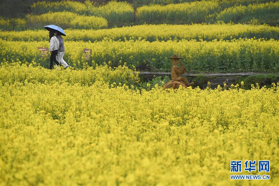 3月28日,游客從黟縣西遞的油菜花田間經(jīng)過(guò)。近日,安徽省黃山市黟縣的油菜花迎來(lái)盛花期。金黃的油菜花與屋舍、道路等形成一幅幅美麗的鄉(xiāng)村畫卷,引人入勝。 新華社記者張端攝