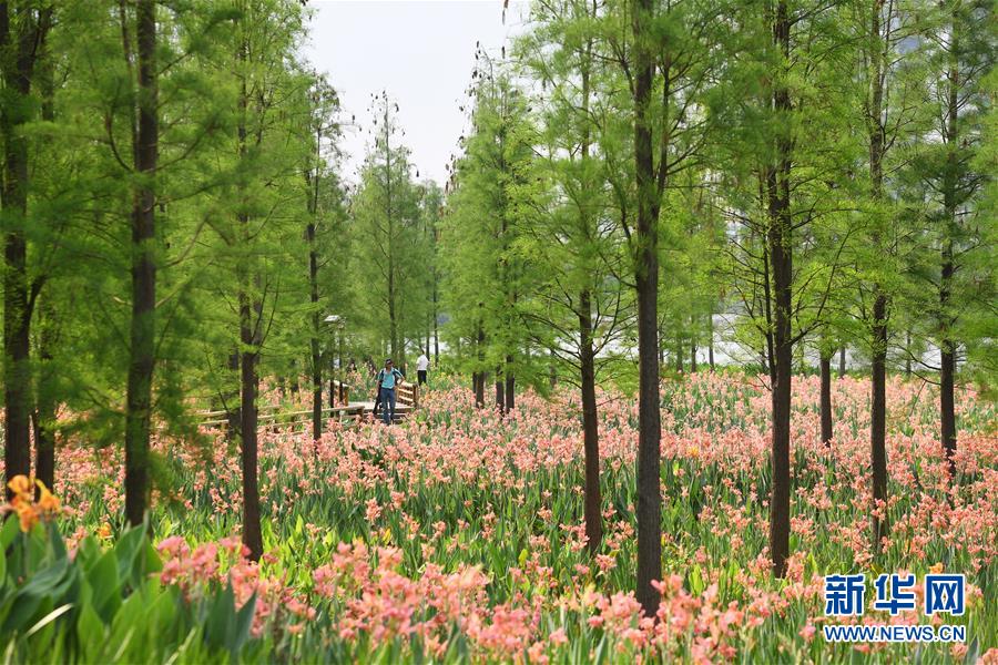 人們?cè)趶V東佛山東平河濱河濕地景觀帶游覽(4月9日攝)。 新華社記者 梁旭 攝