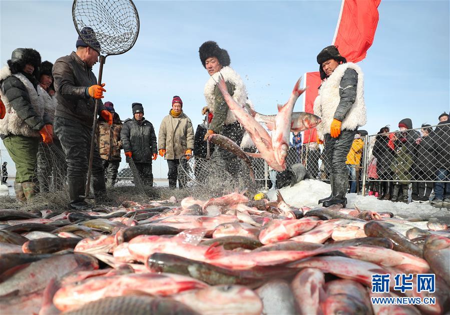 漁民在臥龍湖冰面上捕魚(yú)。新華社記者龍雷攝