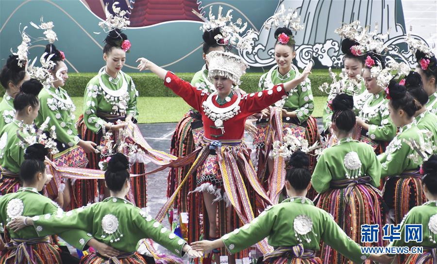 8月4日,來(lái)自貴州省黔東南苗族侗族自治州的演員在表演民族歌舞。新華社記者 李欣 攝