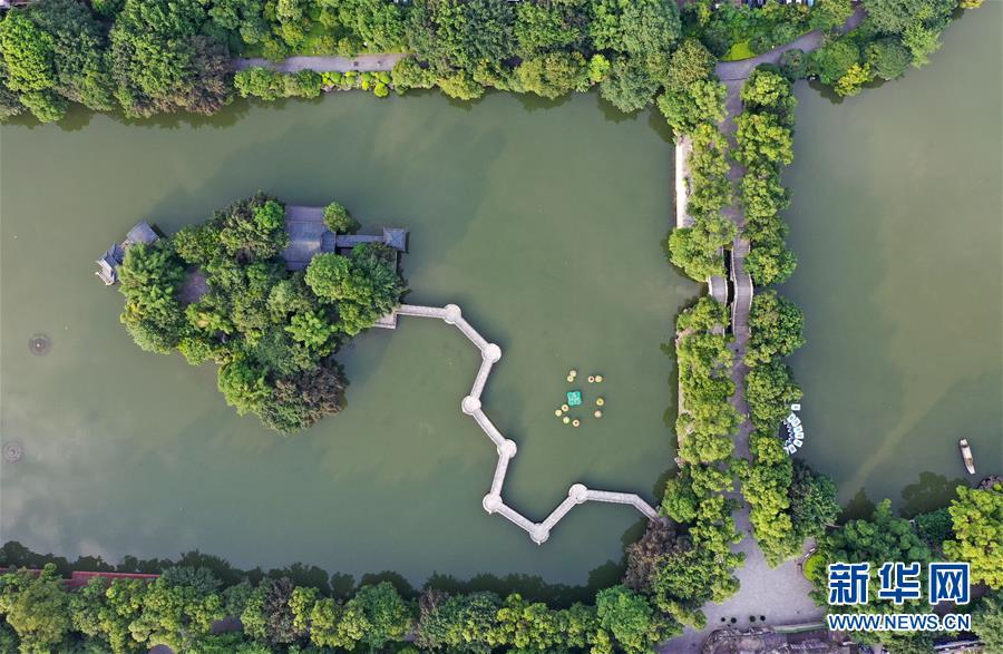 桂林市榕湖景觀(7月1日無(wú)人機(jī)拍攝)。 夏日時(shí)節(jié),廣西桂林市區(qū)內(nèi)的榕湖、杉湖、桂湖、木龍湖等地綠樹成蔭、景色迷人。 新華社記者陸波岸攝