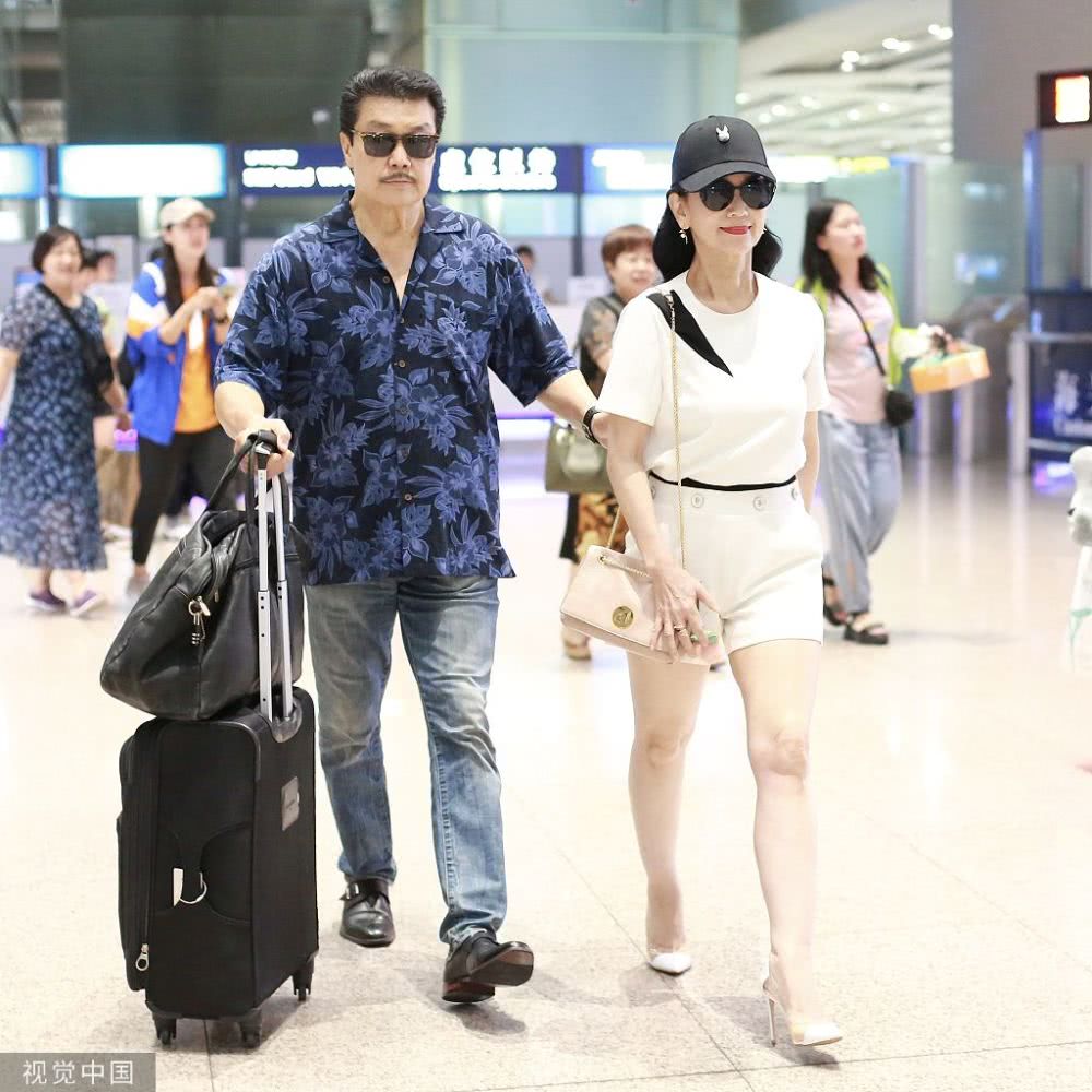 2019年8月10日,北京,趙雅芝與老公黃錦燊現(xiàn)身機(jī)場(chǎng)。