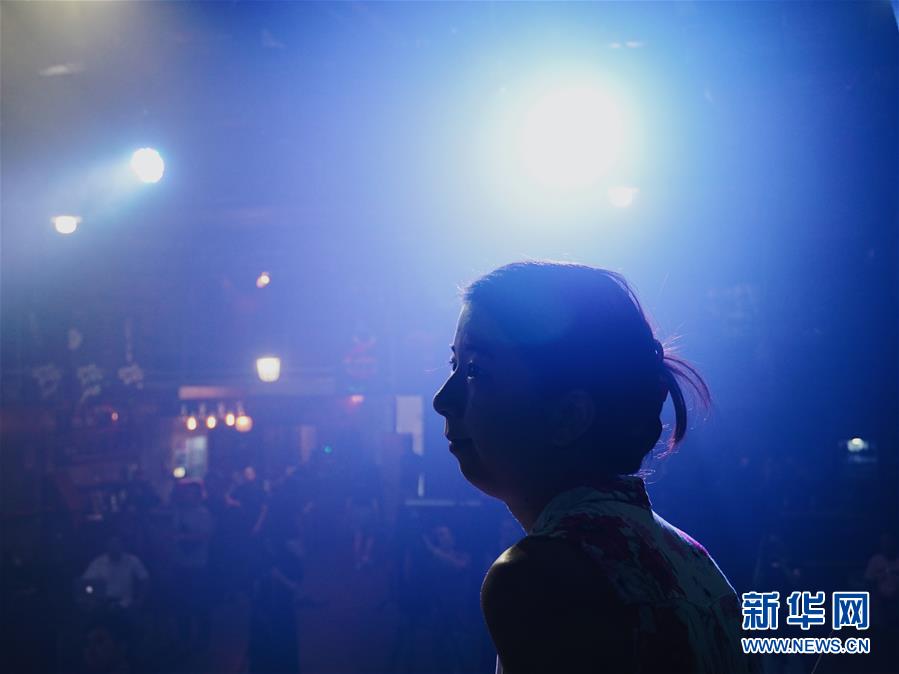 8月14日,8772樂隊(duì)成員在演唱會(huì)前排練。新華社發(fā)(崔博文攝)
