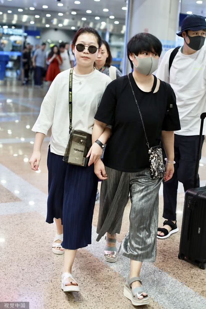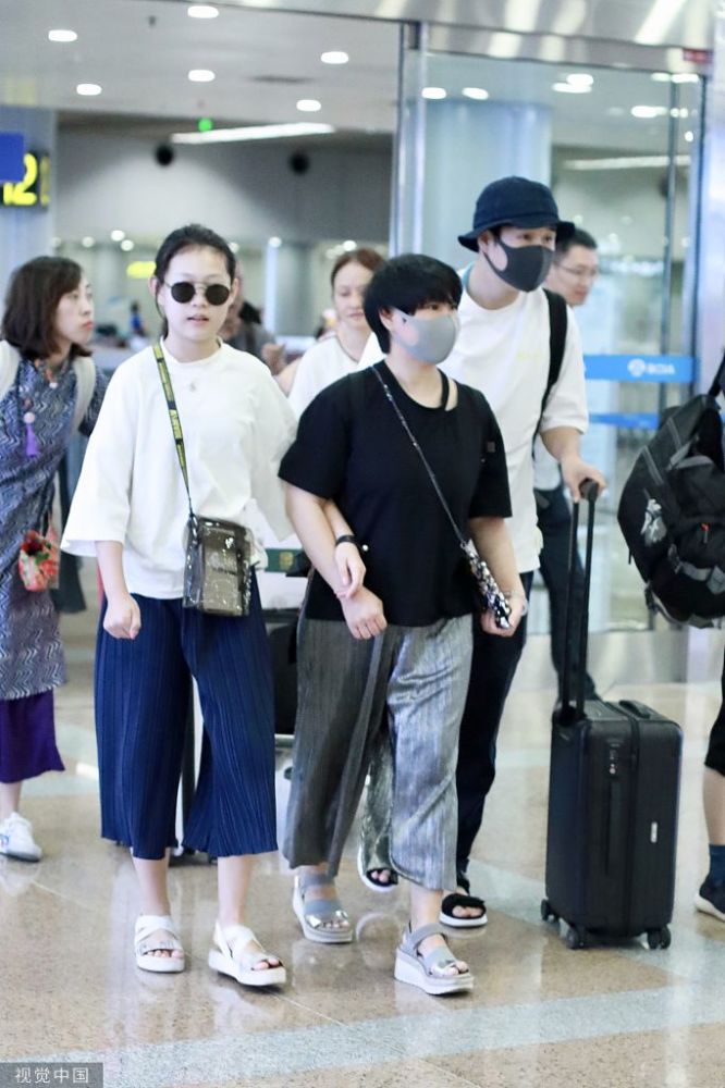 2019年8月15日,北京,小沈陽(yáng)和妻子沈春陽(yáng)帶女兒沈佳潤(rùn)現(xiàn)身機(jī)場(chǎng),一家三口罕見同框。小沈陽(yáng)承包行李甘當(dāng)“苦力”,沈春陽(yáng)和女兒全程挽手親昵似閨蜜,兩人同穿闊腿褲和鞋子,畫面溫馨有愛。