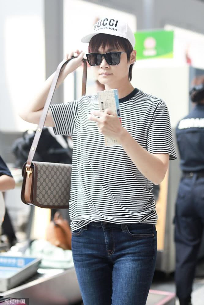 李宇春條紋裝扮現身機場,青春活力,人氣爆棚