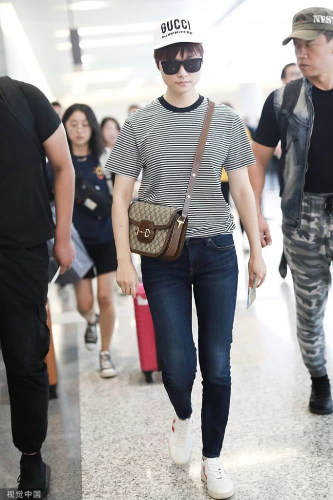 李宇春條紋裝扮現(xiàn)身機(jī)場,青春活力,人氣爆棚