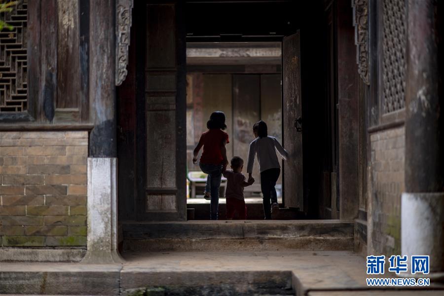 石屏縣異龍鎮(zhèn)符家營村的小朋友們在村里的老屋玩耍(8月8日攝)。新華社記者 江文耀 攝
