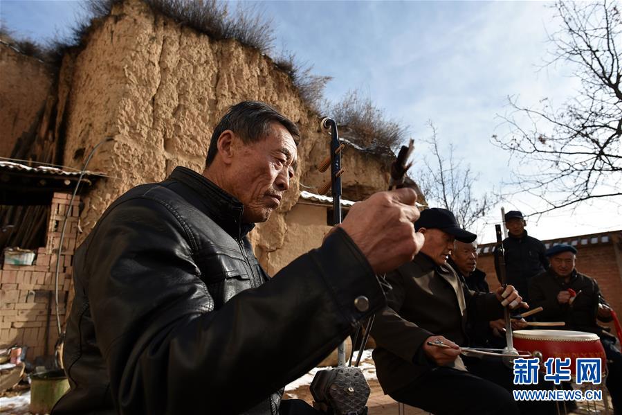 在武鄉(xiāng)縣大有鄉(xiāng)王莊溝村,村民演奏樂(lè)器為秧歌隊(duì)排練伴奏(2月15日攝)。 新華社記者 詹彥 攝