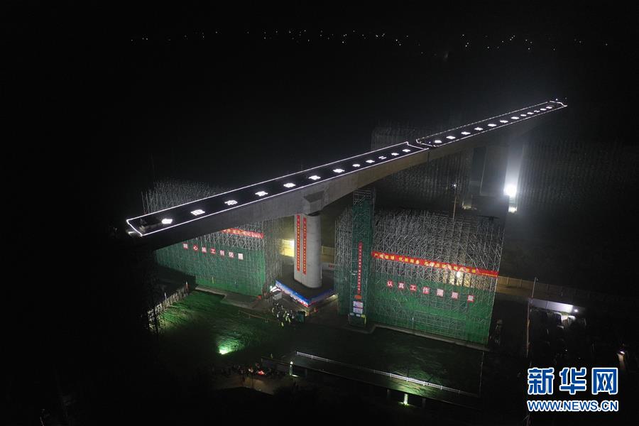 這是8月27日凌晨無人機(jī)拍攝的轉(zhuǎn)體完成的橋梁。 新華社記者 邢廣利 攝