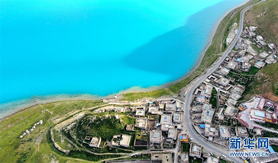8月31日無人機(jī)拍攝的羊卓雍錯及周邊村落。 新華社記者 晉美多吉 攝