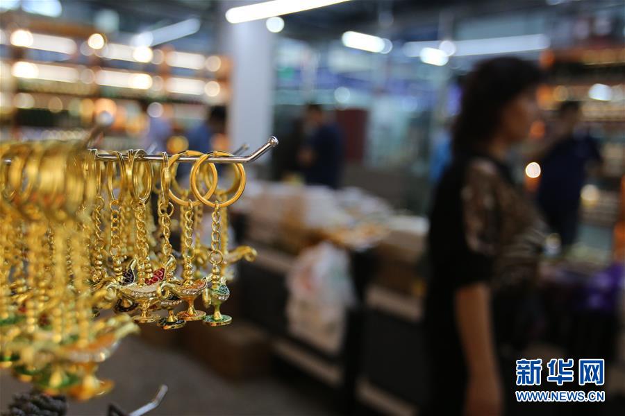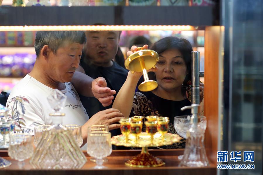 9月4日,在新疆塔城地區(qū)巴克圖口岸,顧客在絲路文化商品城內(nèi)選購商品。 新華社記者沙達提攝
