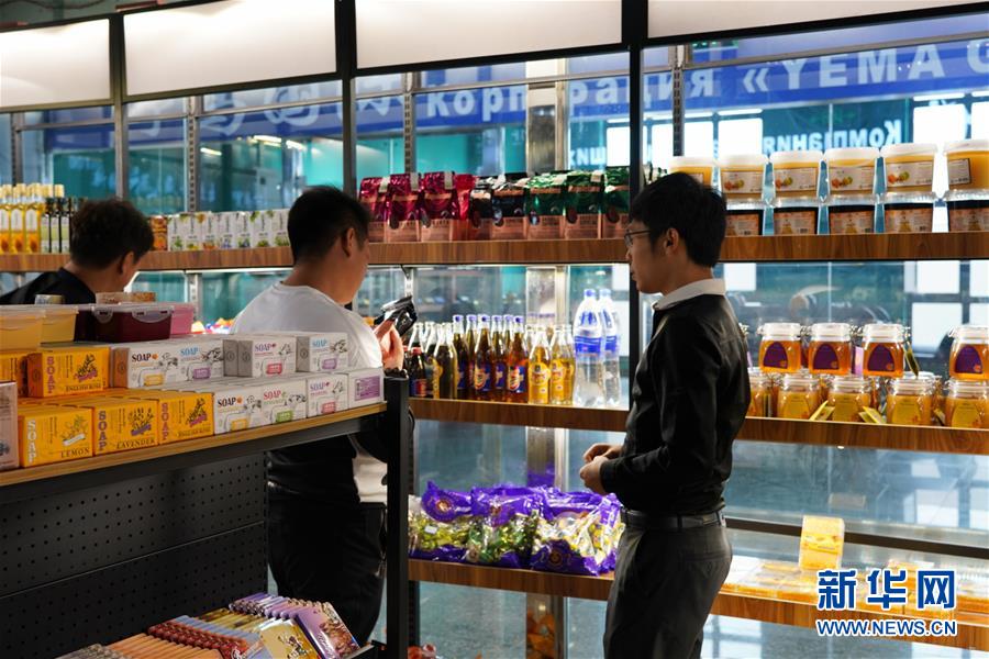 這是9月4日在新疆塔城地區(qū)巴克圖口岸的絲路文化商品城內(nèi)拍攝的進口產(chǎn)品。 新華社記者沙達提攝
