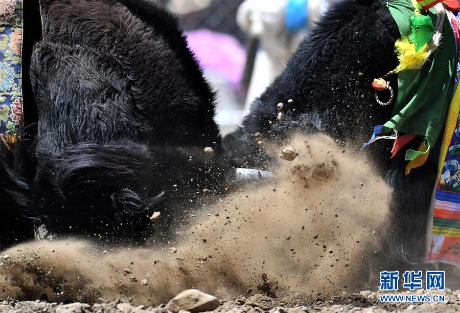 者下鄉(xiāng)斗牛節(jié)歷史悠久,是西藏自治區(qū)非物質(zhì)文化遺產(chǎn)。牧民為參加比賽的種牦牛披綢掛緞,將牛群趕到位于日喀則市白朗縣者下鄉(xiāng)的斗牛場上。參賽的種牦牛為了爭奪牛群的控制權(quán),在成群的母牛面前,更加好斗。角斗有的瞬間分出勝負(fù),有的持續(xù)幾十分鐘,最終勝出的被稱為“牦牛至尊”。