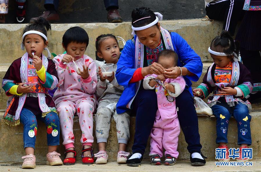 10月28日,在廣西融水苗族自治縣拱洞鄉(xiāng)龍令村,小朋友們參加慶祝豐收活動(dòng)。新華社記者 黃孝邦 攝