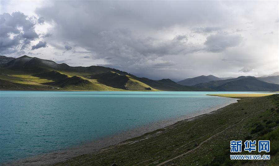 8月31日無人機(jī)拍攝的羊卓雍錯風(fēng)光。新華社記者晉美多吉攝