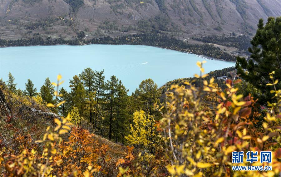 9月23日拍攝的喀納斯景區(qū)風(fēng)光。 金秋時節(jié),位于新疆阿勒泰地區(qū)的喀納斯景區(qū)內(nèi)的林木與喀納斯湖相互映襯,美不勝收。 新華社記者 王菲 攝