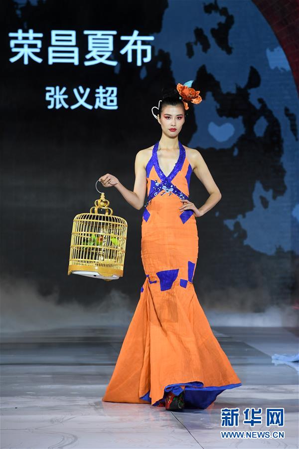 9月25日,模特在榮昌夏布·張義超非遺時尚大秀上展示時裝設(shè)計師張義超的時裝作品。