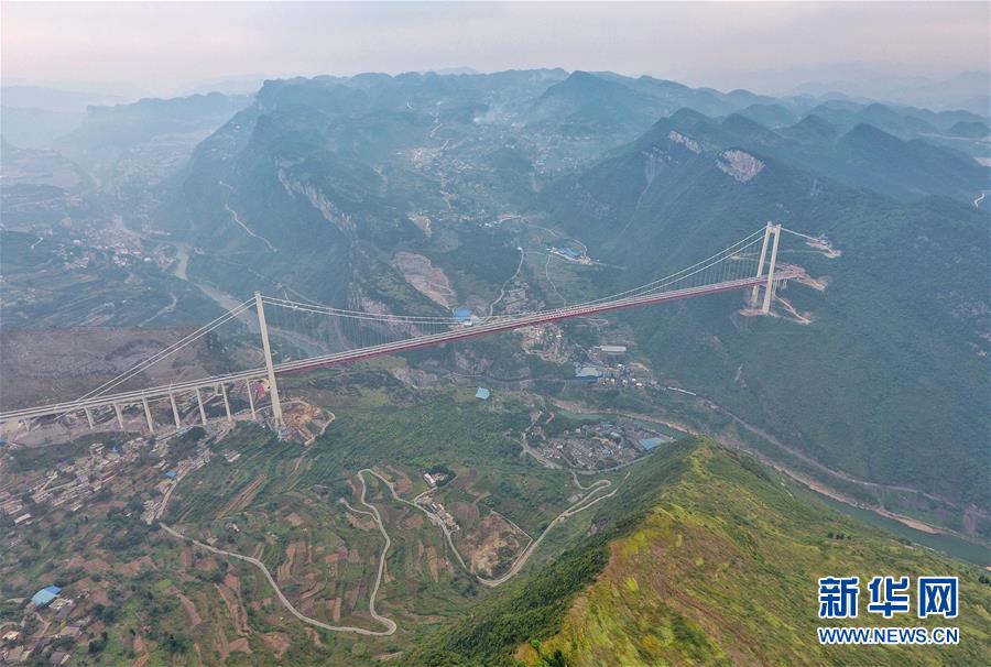 9月30日無(wú)人機(jī)拍攝的赤水河紅軍大橋。 新華社記者劉坤攝