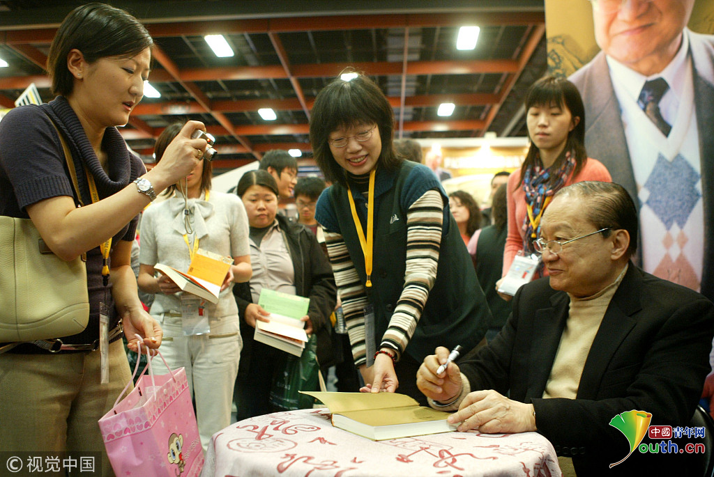 2007年2月2日上午,臺灣,武俠小說大師金庸現(xiàn)身臺北國際書展為書迷簽名,許多讀者除了拿小說來簽名外,還帶著相機(jī)來拍照。圖片作者:聯(lián)合知識庫