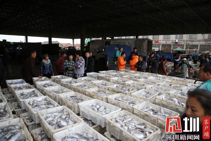 一筐筐的刀魚、鯧魚、鲅魚,很快被運(yùn)輸?shù)脚R近的興海門海鮮批發(fā)市場,市場里人頭攢動、熙熙攘攘,就像趕年集一般,一派購銷兩旺的景象。
