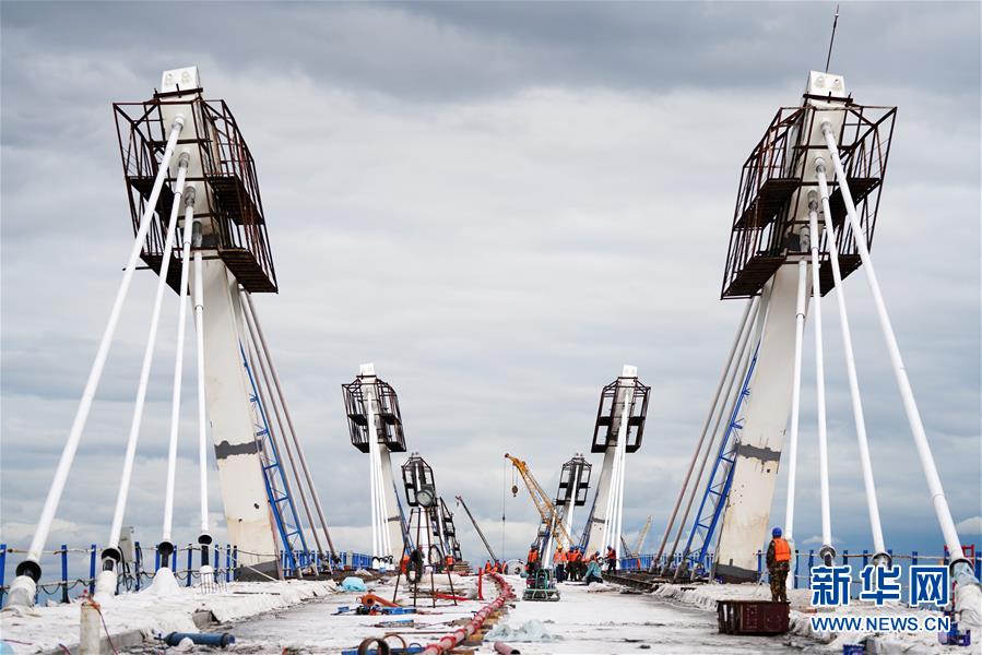 工人在大橋上進(jìn)行橋面鋪裝施工作業(yè)(8月19日攝)。新華社記者王建威攝
