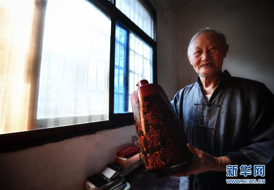 10月12日,丁國坤在家中檢查最新制成一批脫胎漆器的質(zhì)量。新華社記者胡晨歡攝