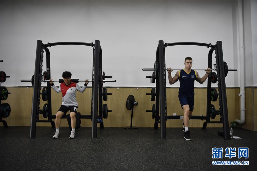 10月16日,運動員在軍運村內(nèi)的健身中心鍛煉。新華社記者王鵬攝