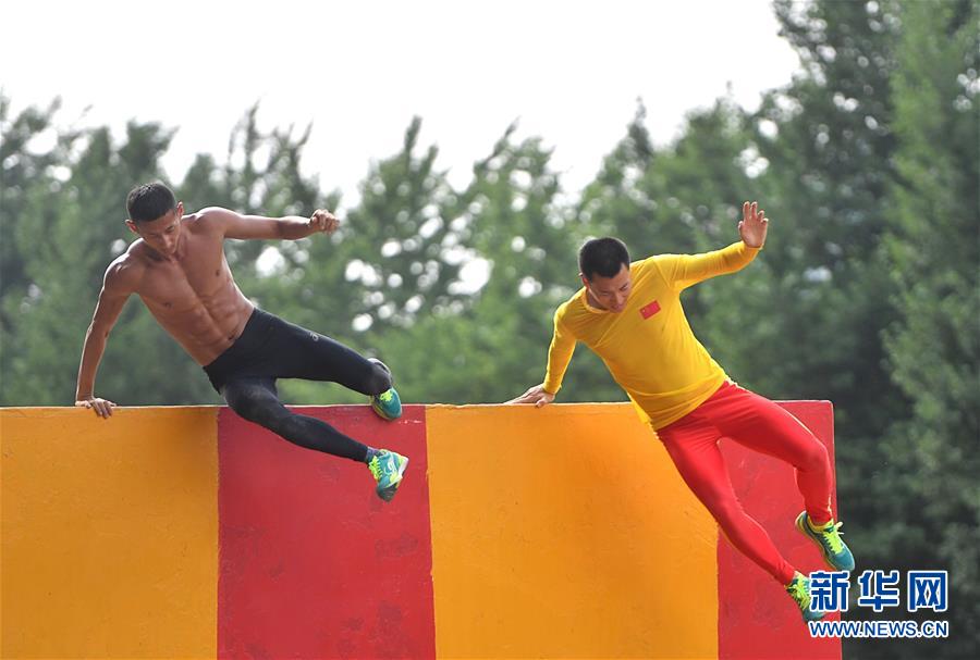 2019年6月28日,八一軍事五項(xiàng)隊(duì)男隊(duì)員在進(jìn)行500米障礙跑訓(xùn)練。新華社記者熊琦攝