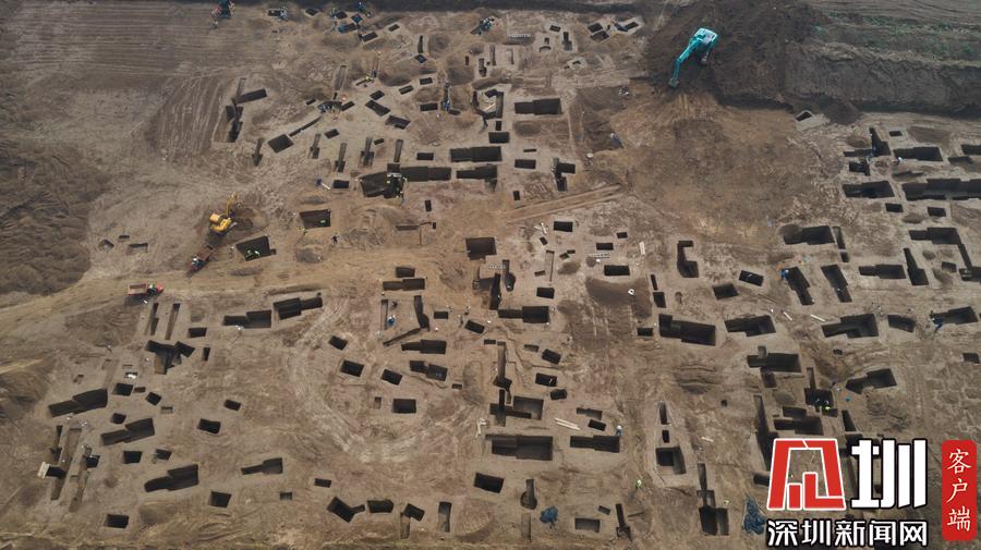 西安宜家工地挖出古墓 空中俯瞰數(shù)百墓坑密密麻麻