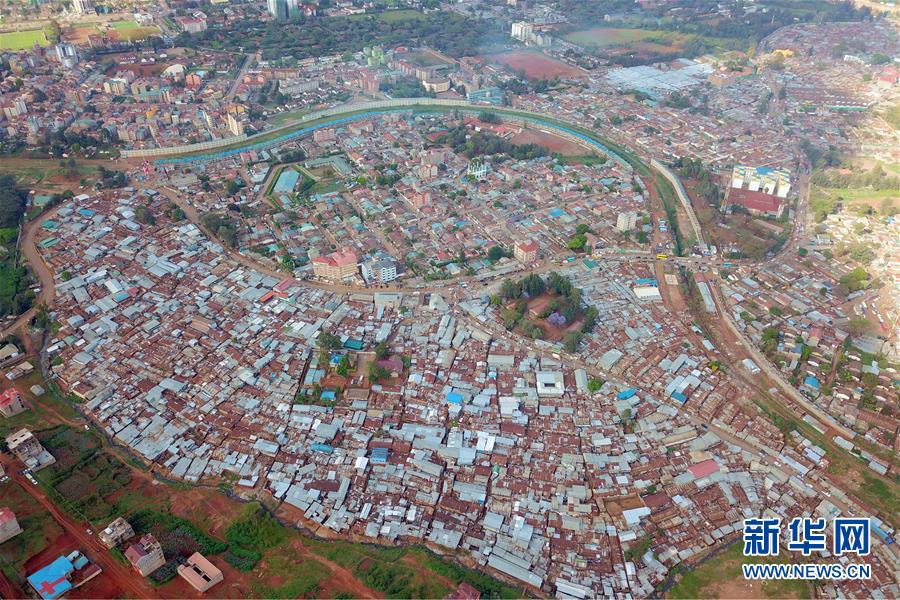 這是10月16日在肯尼亞內羅畢拍攝的基貝拉貧民窟(航拍照片)。新華社記者王騰攝