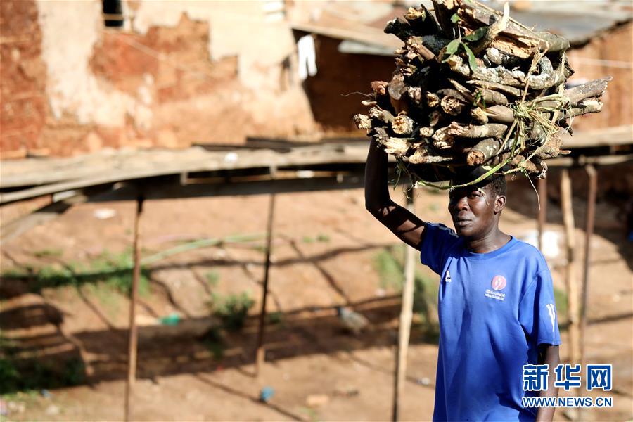 10月16日,在肯尼亞內(nèi)羅畢基貝拉貧民窟,一名男子運送劈柴。新華社記者王騰攝
