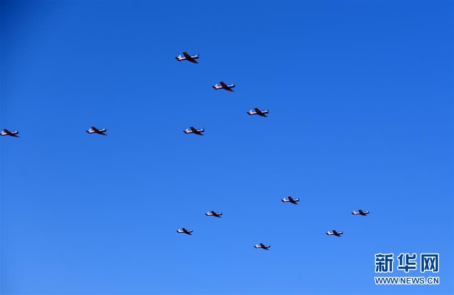 10月17日,“天之翼”飛行表演隊(duì)進(jìn)行飛行表演。 當(dāng)日,慶祝人民空軍成立70周年航空開放活動(dòng)在吉林長(zhǎng)春開幕。空軍多支飛行表演隊(duì)、跳傘表演隊(duì)共舞藍(lán)天,殲-20、運(yùn)-20、殲-16等多款主力戰(zhàn)機(jī)展翅蒼穹,空降兵和航空兵作戰(zhàn)部隊(duì)派出精銳力量展示作戰(zhàn)對(duì)抗,多型武器裝備大規(guī)模、全系統(tǒng)抵臨現(xiàn)場(chǎng)。人民空軍以前所未有的強(qiáng)大陣容亮相長(zhǎng)春,頌揚(yáng)中國(guó)航空事業(yè)110年發(fā)展成就,以開放、自信的姿態(tài)為即將到來(lái)的人民空軍70華誕獻(xiàn)上大禮。 新華社記者 張楠 攝