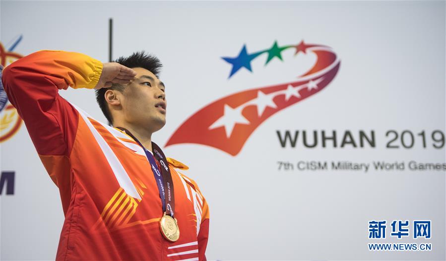 10月20日,中國隊選手吳慧敏(右)、包雪怡在升旗儀式上。當日,在武漢舉行的第七屆世界軍人運動會水上救生項目女子50米假人救生決賽中,中國隊選手吳慧敏以33秒93的成績奪得冠軍,隊友包雪怡以35秒79的成績獲得亞軍。新華社記者肖藝九攝