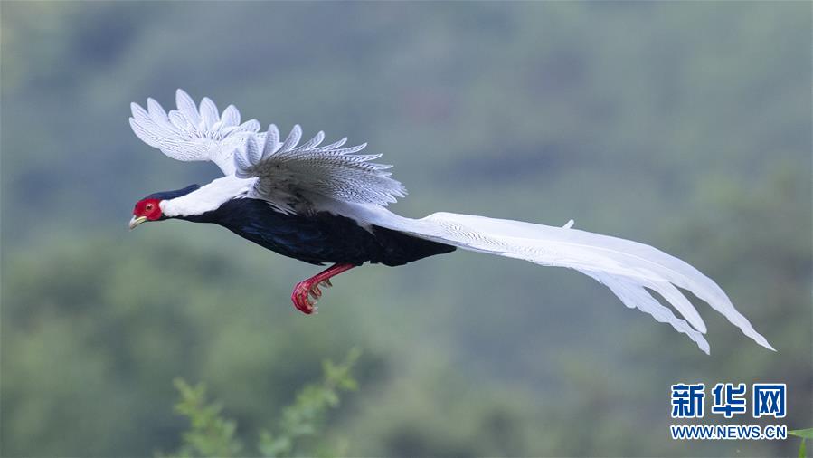 一只白鷴在福建省南靖縣鵝仙洞自然保護(hù)區(qū)展翅飛翔(10月20日攝)。新華社記者梅永存攝