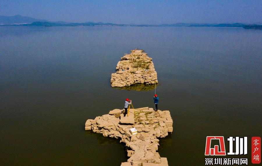 2019年10月30日,江西仙女湖旅游股份有限公司測量人員乘坐工作船對明代萬年橋進(jìn)行測量,該橋橋身凸出水位最高處達(dá)1.64米。