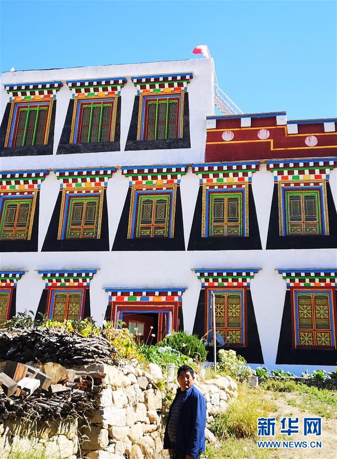 10月29日,在四川省鄉(xiāng)城縣青德鄉(xiāng)仲德村,村民阿布洛絨丹巴和他的白色藏房。新華社記者江宏景攝