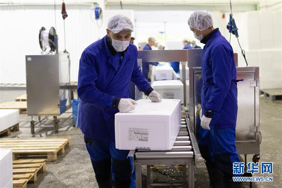 9月13日,在俄羅斯摩爾曼斯克,俄羅斯水產(chǎn)養(yǎng)殖公司工作人員搬運(yùn)已裝箱的鮭魚。 俄羅斯水產(chǎn)養(yǎng)殖公司是俄羅斯大西洋鮭和虹鱒的主要生產(chǎn)商之一。目前,該公司產(chǎn)品在俄市場(chǎng)上占比近20%,在摩爾曼斯克和卡累利阿共和國(guó)均有養(yǎng)殖場(chǎng)。俄羅斯水產(chǎn)養(yǎng)殖公司總經(jīng)理伊利亞·索斯諾夫認(rèn)為,中國(guó)鮭魚消費(fèi)市場(chǎng)潛力巨大?!爸袊?guó)市場(chǎng)對(duì)于我們來說非常重要,我們期待早日進(jìn)入中國(guó)市場(chǎng)……希望我們的鮭魚能贏得中國(guó)消費(fèi)者的喜愛?!?新華社記者白雪騏攝