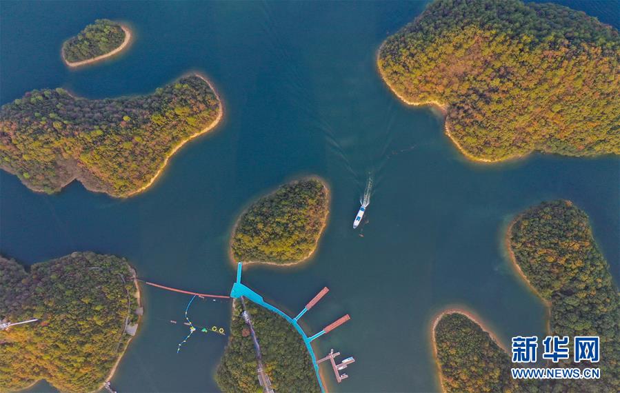 11月9日無人機拍攝的廬山西海。 當日,落日余暉下的江西廬山西海山青水藍,美不勝收。 新華社記者 周密 攝