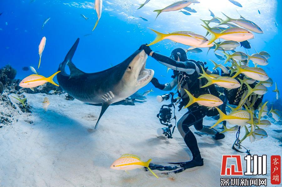 2019年1月28日報道(具體拍攝時間不詳),虎鯊向來是出了名的兇猛,但這組照片中的虎鯊們似乎變成了粘人的萌寵一般。鏡頭下,它們開心又友好地同潛水員們互動著,享受潛水員輕撫肚皮,緩緩地在潛水員周圍游動。攝影師在巴哈馬群島老虎灘水域拍下了這組照片。