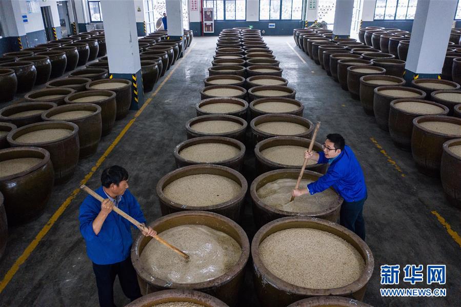 11月7日,古越龍山紹興酒股份有限公司釀酒一廠的工人碼放裝有酒母的酒壇,開啟黃酒“冬釀”序幕。這家酒廠占地面積120畝,年產(chǎn)手工黃酒2萬噸。隨著立冬節(jié)氣的到來,中國黃酒之鄉(xiāng)——浙江紹興的黃酒企業(yè)開啟傳統(tǒng)“冬釀”。依照傳統(tǒng),立冬前后是紹興黃酒開始投料發(fā)酵的日子,從立冬節(jié)氣開始到第二年立春,這段時(shí)間最適合做黃酒,人們把這段時(shí)間稱為“冬釀”。有著2500多年歷史的紹興黃酒依舊保留著古法釀造工藝:浸米、蒸飯、攤涼、落缸、保溫發(fā)酵、開耙(前發(fā)酵)、露天后發(fā)酵,到第二年春天接著開始?jí)赫ァ⒓寰疲⒕?、裝酒入壇、封壇口、入庫貯藏。經(jīng)過一代又一代釀酒技師的口授心傳,傳統(tǒng)的紹興黃酒釀制工藝被完整地保存下來。1999年紹興黃酒成為國家首批原產(chǎn)地域保護(hù)產(chǎn)品,2006年紹興黃酒釀制技藝被列入國家級(jí)非物質(zhì)文化遺產(chǎn)名錄。新華社記者徐昱攝