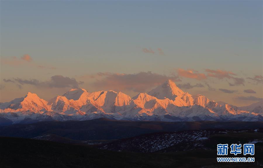 這是在川藏公路四川高爾寺山埡口拍攝的夕陽下的雅拉雪山(2018年11月9日攝)。新華社記者江宏景攝